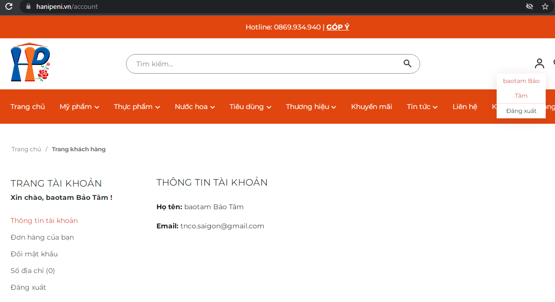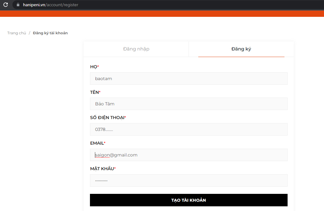 - Bước 3: "Đăng nhập" vào hanipeni.vn theo thông tin đã đăng ký & sử dụng tài khoản để đặt hàng hoặc đánh giá sản phẩm đã mua