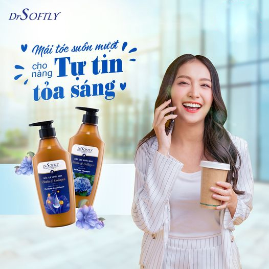 - Thành phần chính của Combo gội xả DrSoftly là Biotin và Collagen, đóng vai trò quan trọng trong việc nuôi dưỡng tóc, giúp tóc chắc khỏe từ gốc đến ngọn, giảm gãy rụng, thúc đẩy quá trình mọc tóc mới nhanh hơn. Collagen nuôi dưỡng nang tóc, giúp các sợi tóc bóng khỏe, mềm mượt, hạn chế tình trạng xơ rối và phục hồi lại tóc sau những hư tổn do tác động của môi trường.