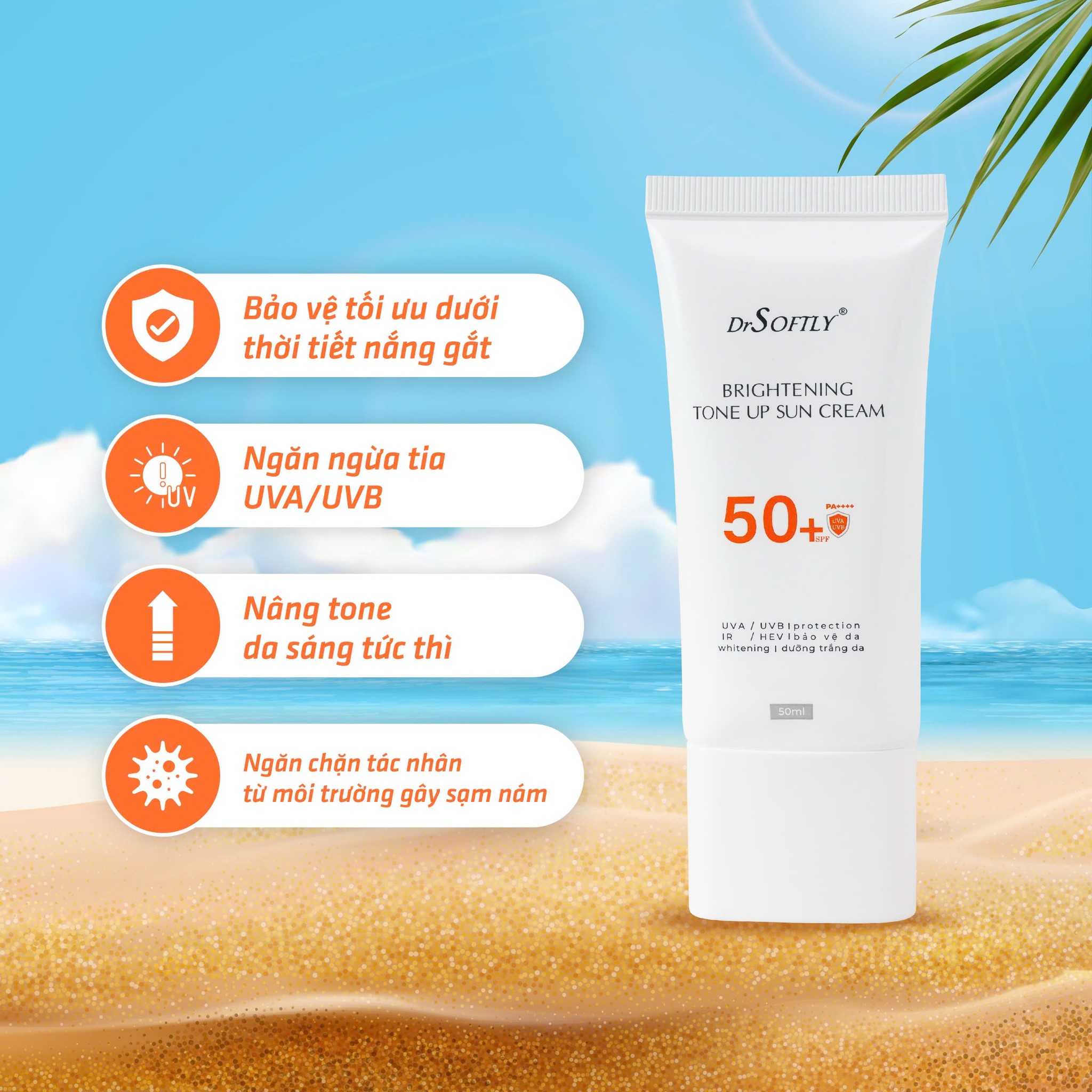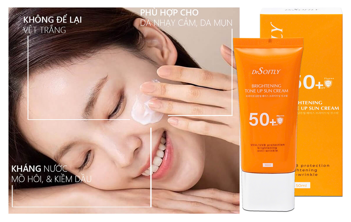 Kem chống nắng nâng tông trắng da Drsoftly Brightening Tone Up Sun Cream SPF50+ PA++++ 50ml