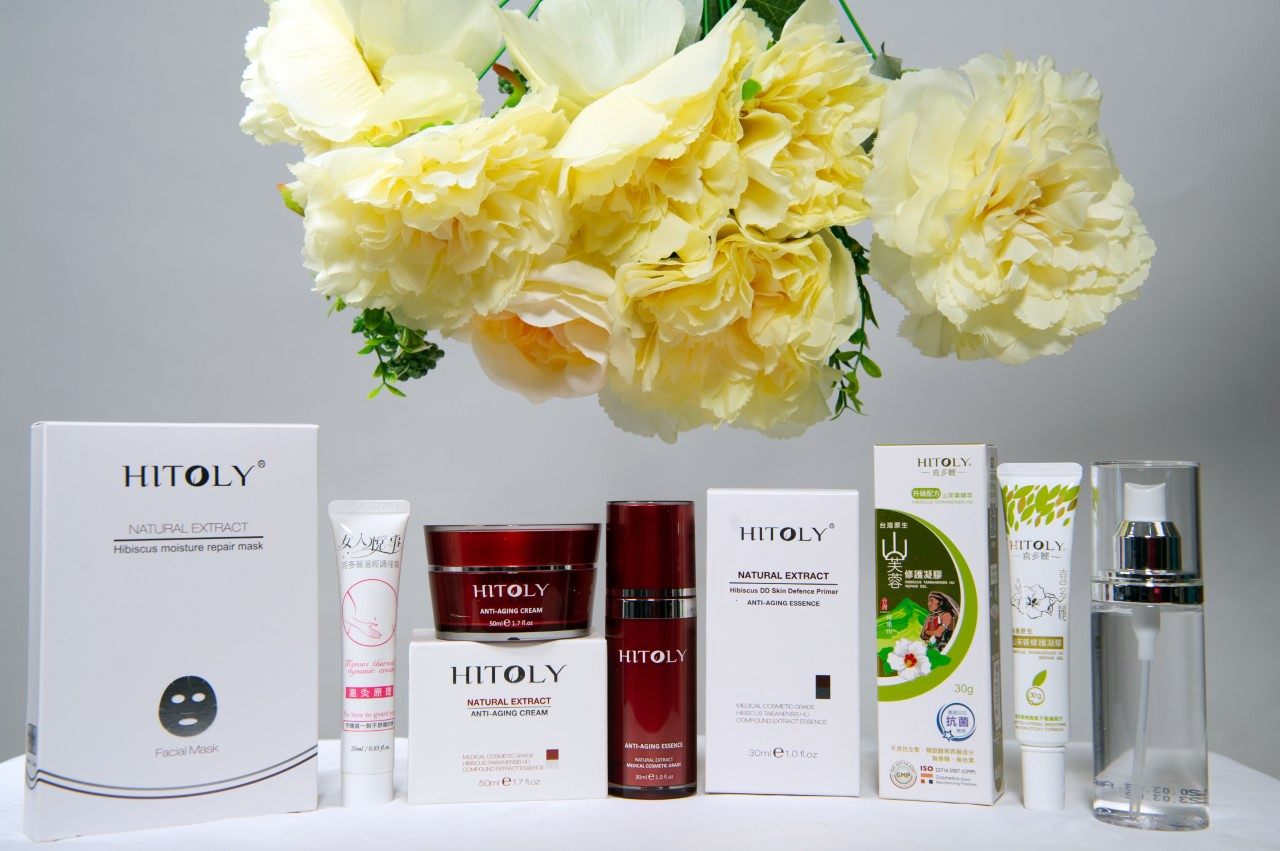 Bộ sản phẩm Hitoly được sản xuất tại Công ty Dược Mỹ Phẩm Kitori Biotechnology tại Đài Loan. Thành phần chính của Hitoly là tổng hợp chiết xuất từ loài hoa râm bụt mọc trên núi (Hibiscus Taiwanensis) của Đài Loan. Một loại hoa hình thành từ cây thân gỗ lớn, thân cây có nhiều lông, lá mọc so le, hình bán nguyệt, có răng cưa, cuống dài. Hoa nở vào khoảng giữa mùa hạ và mùa thu, hoa nở riêng lẻ giữa nách lá , tràng hoa màu trắng hồng, lúc chớm nở màu trắng sáng, sau chuyển dần sang màu hồng, lúc nở rộ chuyển sang màu đỏ sẫm. Thành phần tự nhiên giúp hỗ trợ tẩy sạch mụn và ngăn ngừa mụn tái phát cực kỳ hiệu quả. Ngoài ra, sản phẩm Hitoly còn tổng hợp các thành phần thảo dược thiên nhiên, giúp làm dịu da, chống lão hóa tế bào, đặc biệt an toàn cho cả mẹ bầu và đang cho con bú.