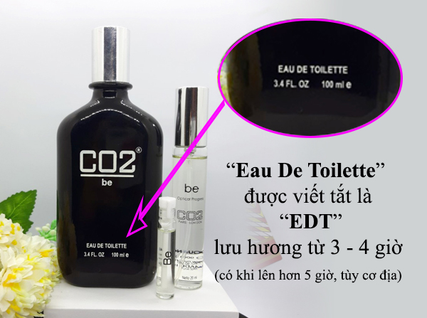 Eau de Toilette (EDT) chứa khoảng 5 - 15% tinh chất nước hoa, thời gian lưu hương khoảng 3 - 4 tiếng, có khi lên hơn 5 giờ (tùy cơ địa). Nước hoa EDT mang mùi hương nhẹ nhàng, tươi sáng, rất phù hợp với khí hậu ấm áp. Đây cũng là loại nước hoa có giá cả phù hợp với túi tiền của đa số người dùng.