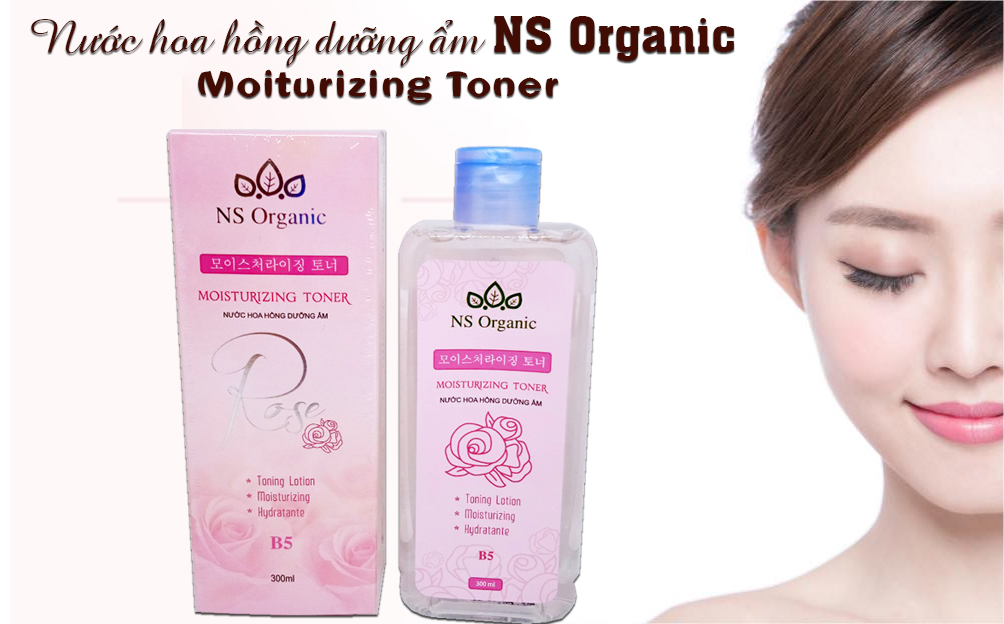 - Nước hoa hồng dưỡng ẩm da NS Organic Moiturizing Toner với các thành phần chiết xuất từ thiên nhiên Organic, cấp ẩm, cân bằng độ PH trên da, làm mềm da khô ráp.