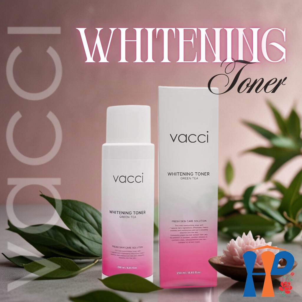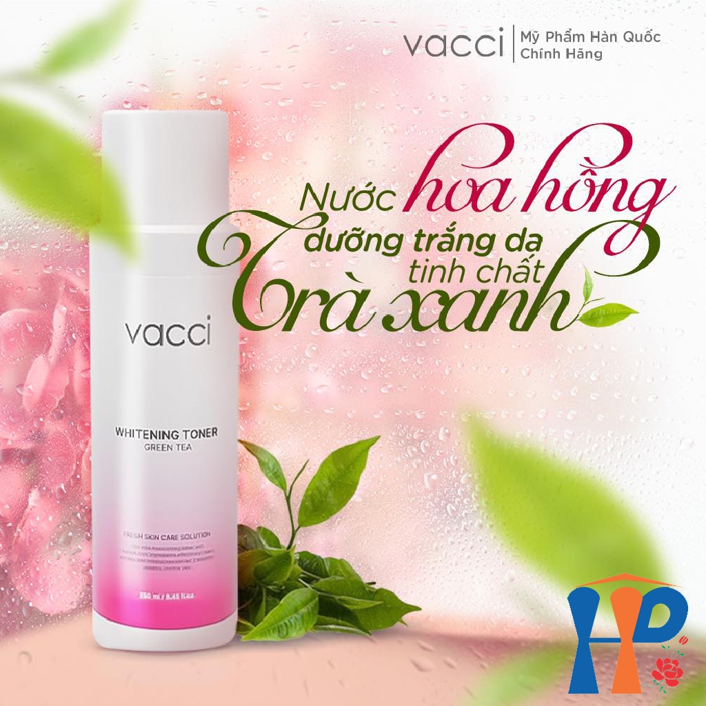 - Nước hoa hồng dưỡng trắng da tinh chất trà xanh Vacci Whitening Toner Green Tea với thành phần cấp ẩm, làm dịu mọi cơn ngứa do da hư tổn.