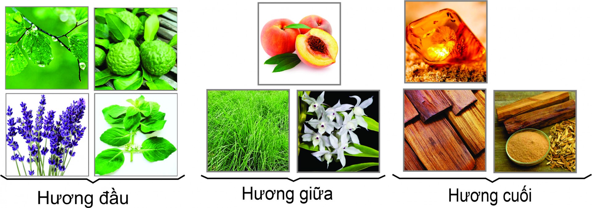 - Hương Đầu: Hoa Lavender, Hương lục, Cây bạc hà, Cam Bergamot