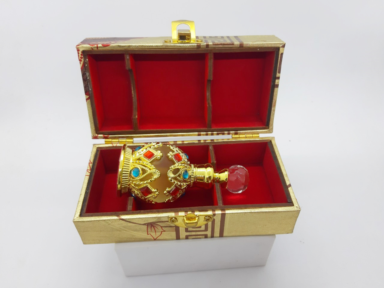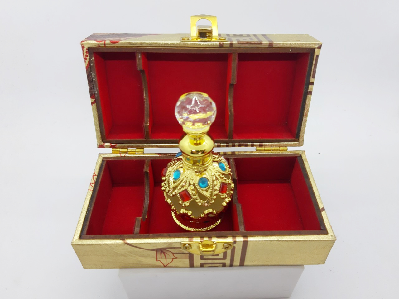 Nước hoa HP Parfum bào chế dạng tinh dầu lưu hương trên 10 giờ, mẫu chai Dubai với thiết kế đính đá và viền hoa văn sinh động, độc đáo, kèm hộp gỗ sang trọng, chống rung lắc, bể vỡ, trầy xước... sản phẩm bên trong, thích hợp cho vận chuyển đường dài. Và trưng bày trong tủ kính thêm nhiều sắc màu sống động.